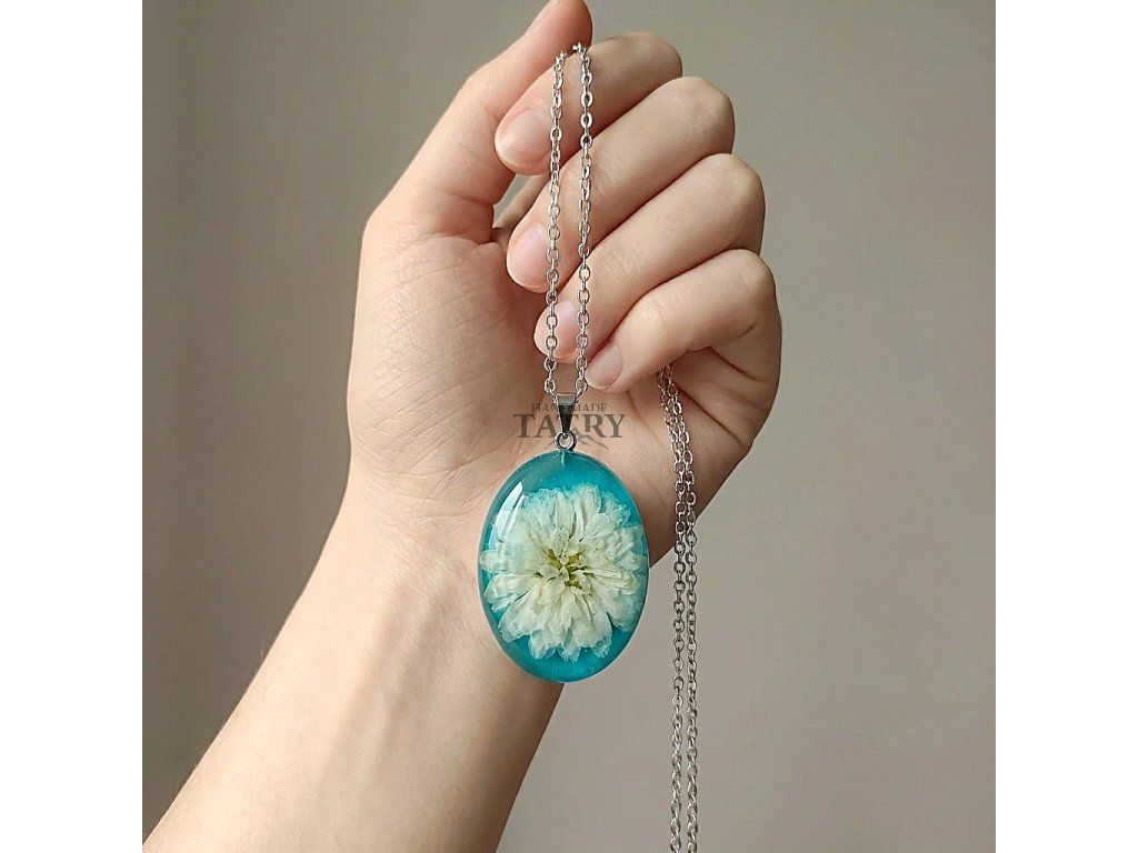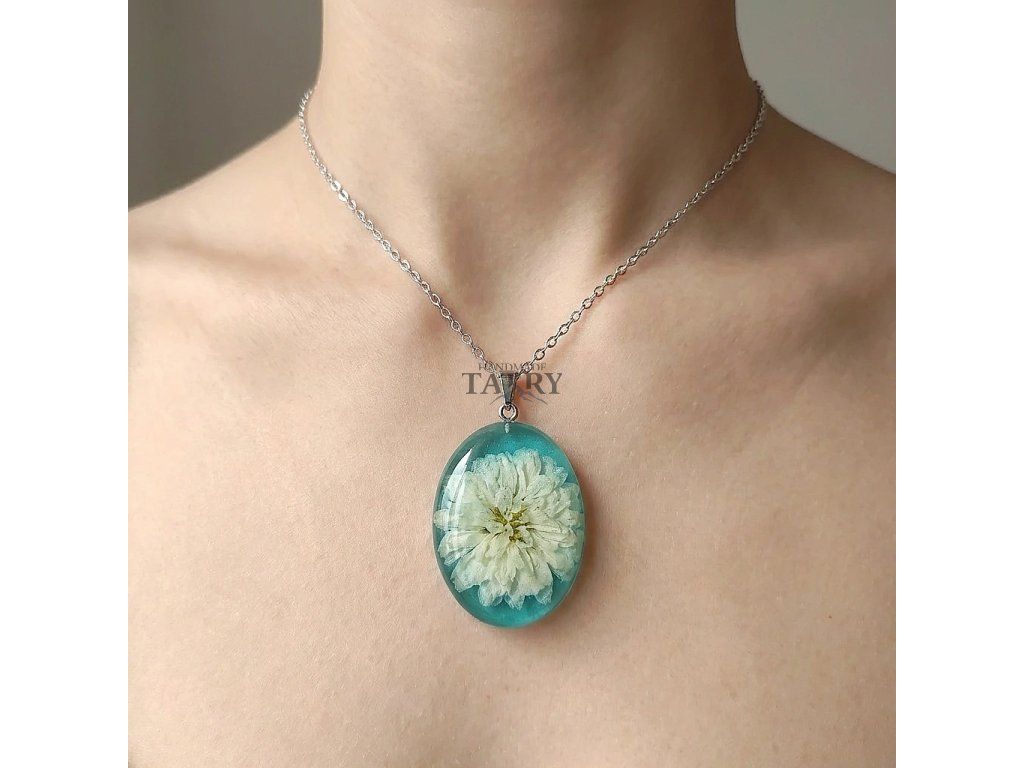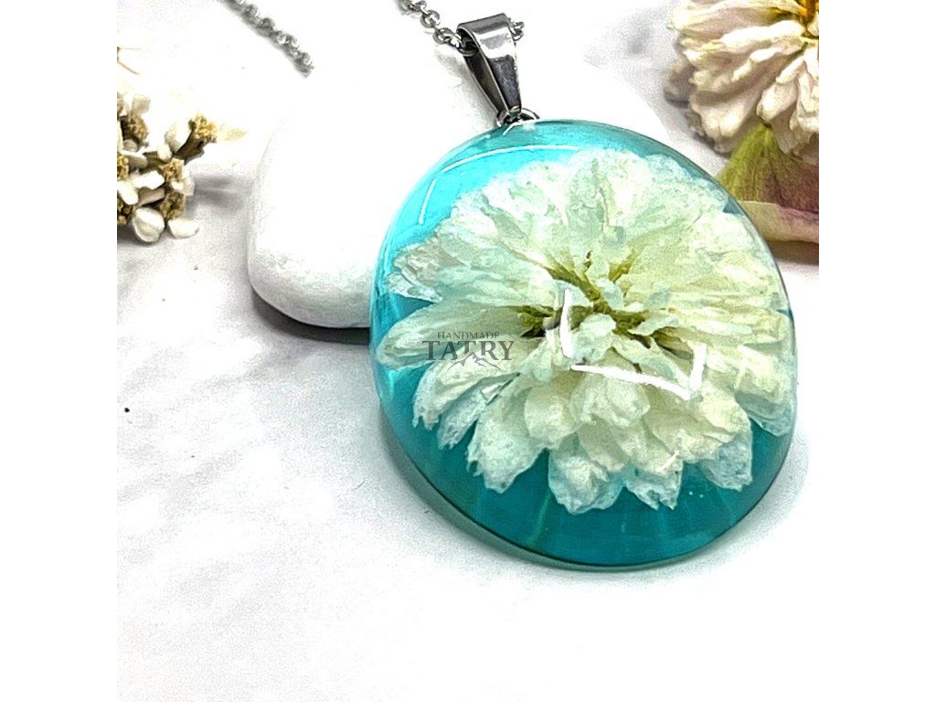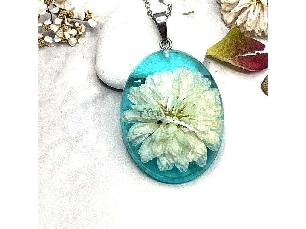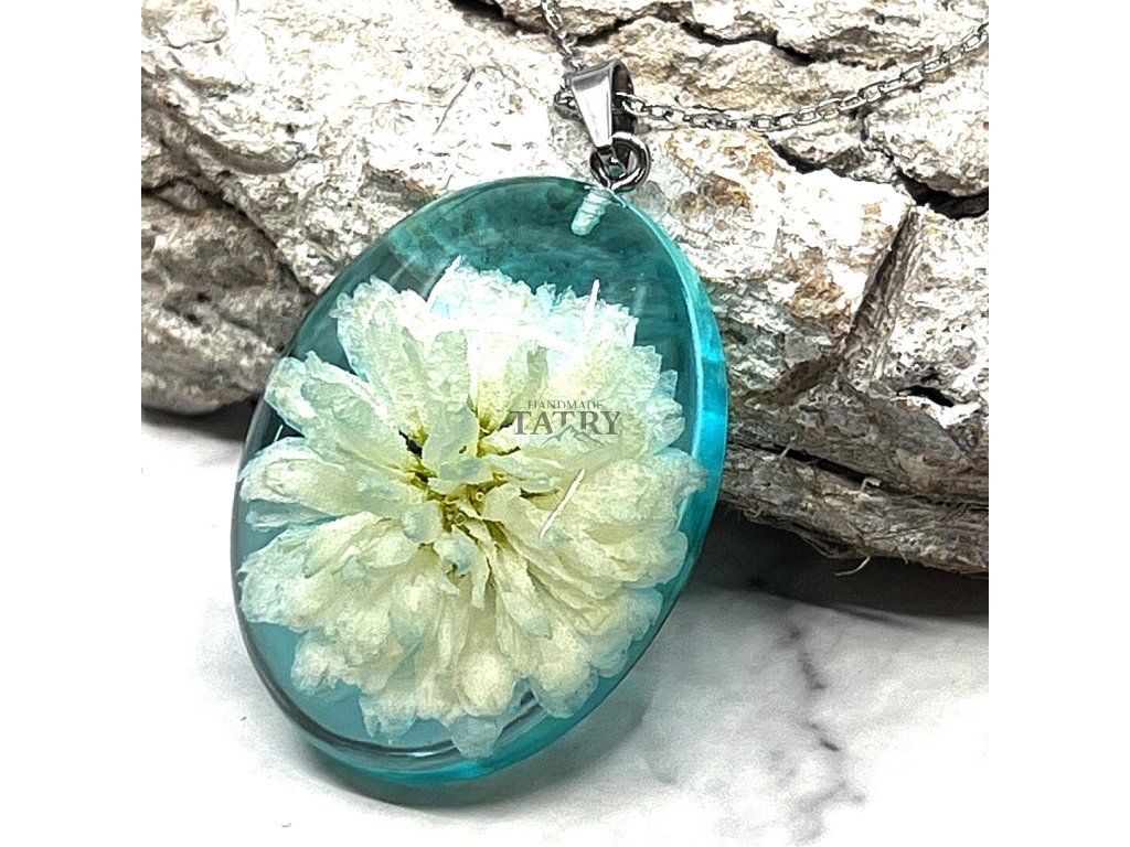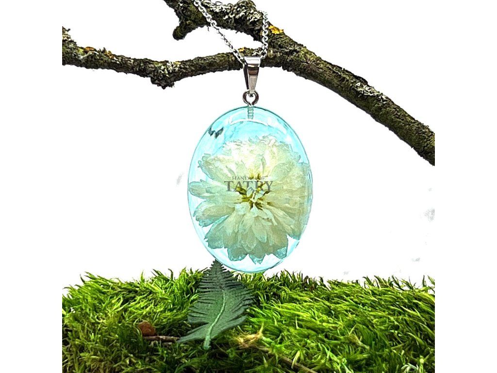 NÁHRDELNÍK CHRYZANTÉMA OVÁL XL BIELA V ZELENOM