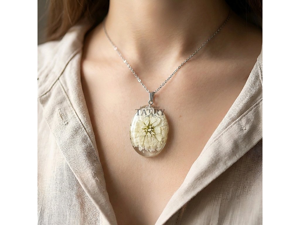 NÁHRDELNÍK CHRYZANTÉMA OVÁL XL BIELA ČÍRA