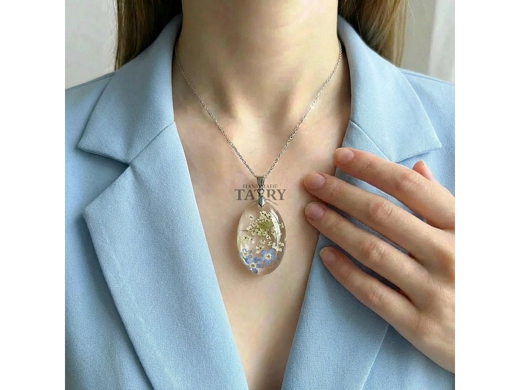 NÁHRDELNÍK NEZÁBUDKA A ČIPKA KRÁĽOVNY ANNY OVÁL M