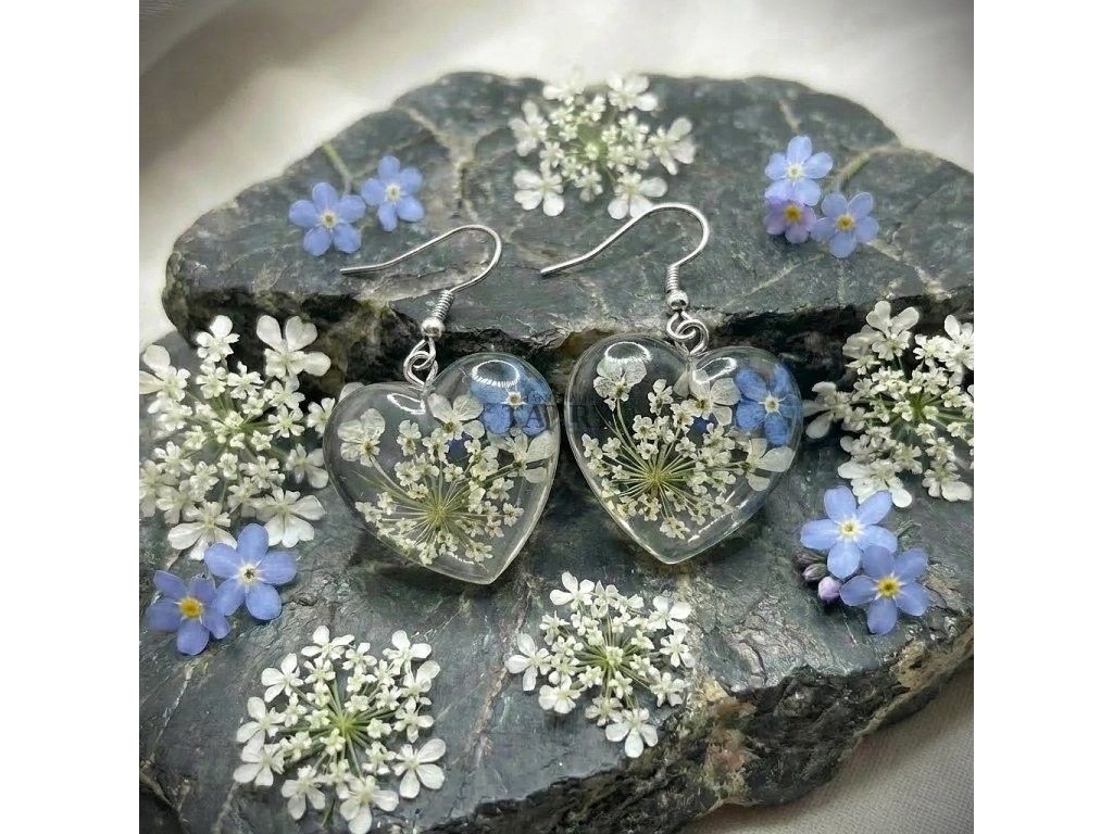 NÁUŠNICE ČIPKA KRÁĽOVNEJ ANNY A NEZÁBUDKA, SRDCE S